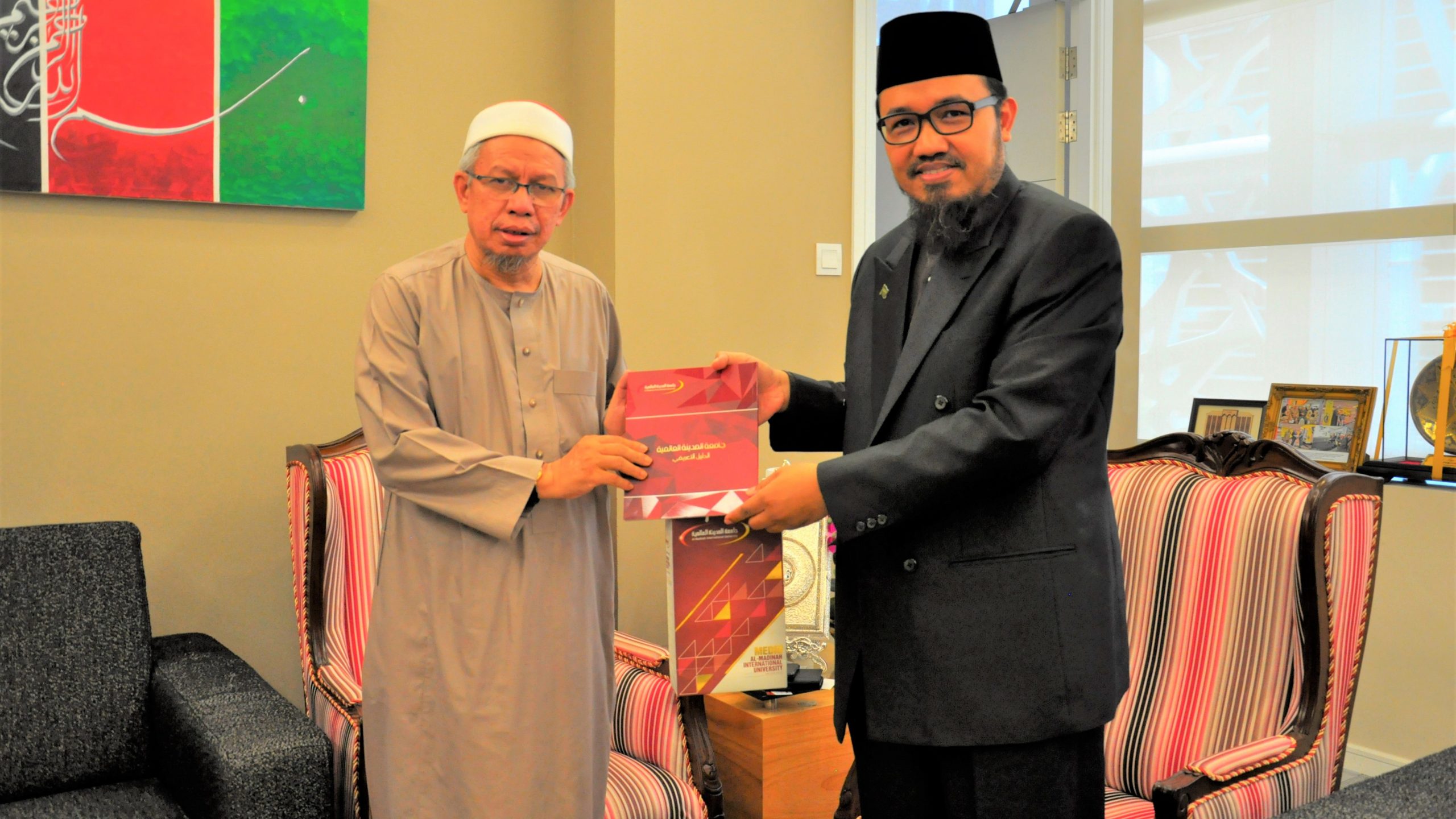 Al-Madinah International University(MEDIU) visited the office of The Mufti of Federal Territory Kuala Lumpur, Sahibus Samahah Datuk Dr Zulkifli Mohamad Al-Bakri in Kuala Lumpur on Wednesday, 4 March 2020. The visit was headed by MEDIU’s Honorable CEO, Assoc Prof. Dr. Fadlan Mohd Othman accompanied by Deputy Chief Executive (Student Affairs), Assoc. Prof. Dr. Doucoure Abdou Samadou; Registrar, Mrs. Nurul Ashikin Abdul Latiff; International Relations Manager, Mr. Ahmad Fallatah and Head of Public Relations Department, Mr. Jamaluddin Hussain.