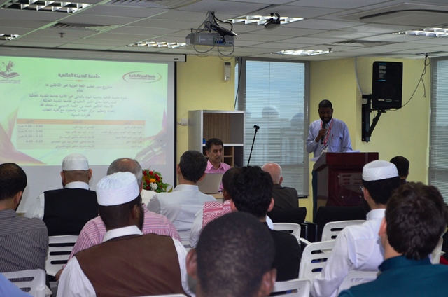 The event begins with recitation verses of Al-Quran and a short lecture on the role and importance of Arabic language was presented by Assoc. Prof. Dr. Flayyih Mudhhi Ahmed, Head of Arabic Literature and Literary Criticism. He also briefed on the background of the World Day of Arabic Language celebration. Dean, Faculty of Languages; Assoc.Prof.Dr. Daud Quadir Elega also gave a speech on the importance and beauty of the Arabic language and MEDIU’s role and contribution in spreading the Arabic language medium through its modern techniques learning process. He also explained the program Mubeen, namely a recognized training program for teaching Arabic to non-Arabic speakers, through diversified courses suitable to the needs of the applicant. Mubeen program is a joint venture TAOQ Public Relations, a subsidiary of Saudi Research and Marketing Group The Kingdom of Saudi Arabia in Riyadh.`